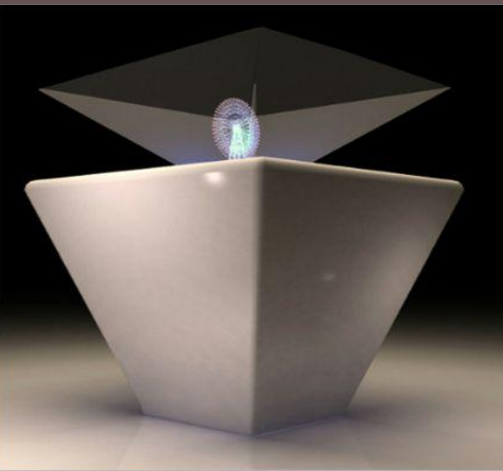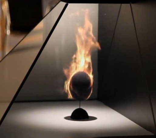 全息展示柜主要由柜體、分光鏡、射燈、視頻播放設備等組成。